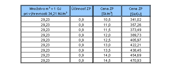 energetických vstupov na výrobu jedného GJ tepla........... 46