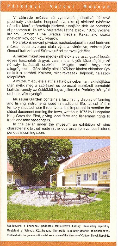 Mestské múzeum Štúrovo - Párkányi Városi Múzeum - Town museum Štúrovo